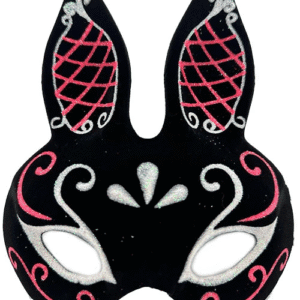 Siyah Renk Mavi Beyaz Simli Siyah Süet Kaplama Tavşan Maskesi 18×16 Cm