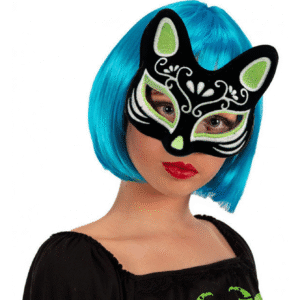 Siyah Renk Süet Kaplama Üzeri Gümüş Yeşil Simli Kedi Maskesi 17×14 Cm