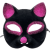 Balolar ve özel günler için mükemmel bir aksesuar olan Siyah Renk Fuşya Simli Süet Kedi Maskesi ile göz kamaştırın